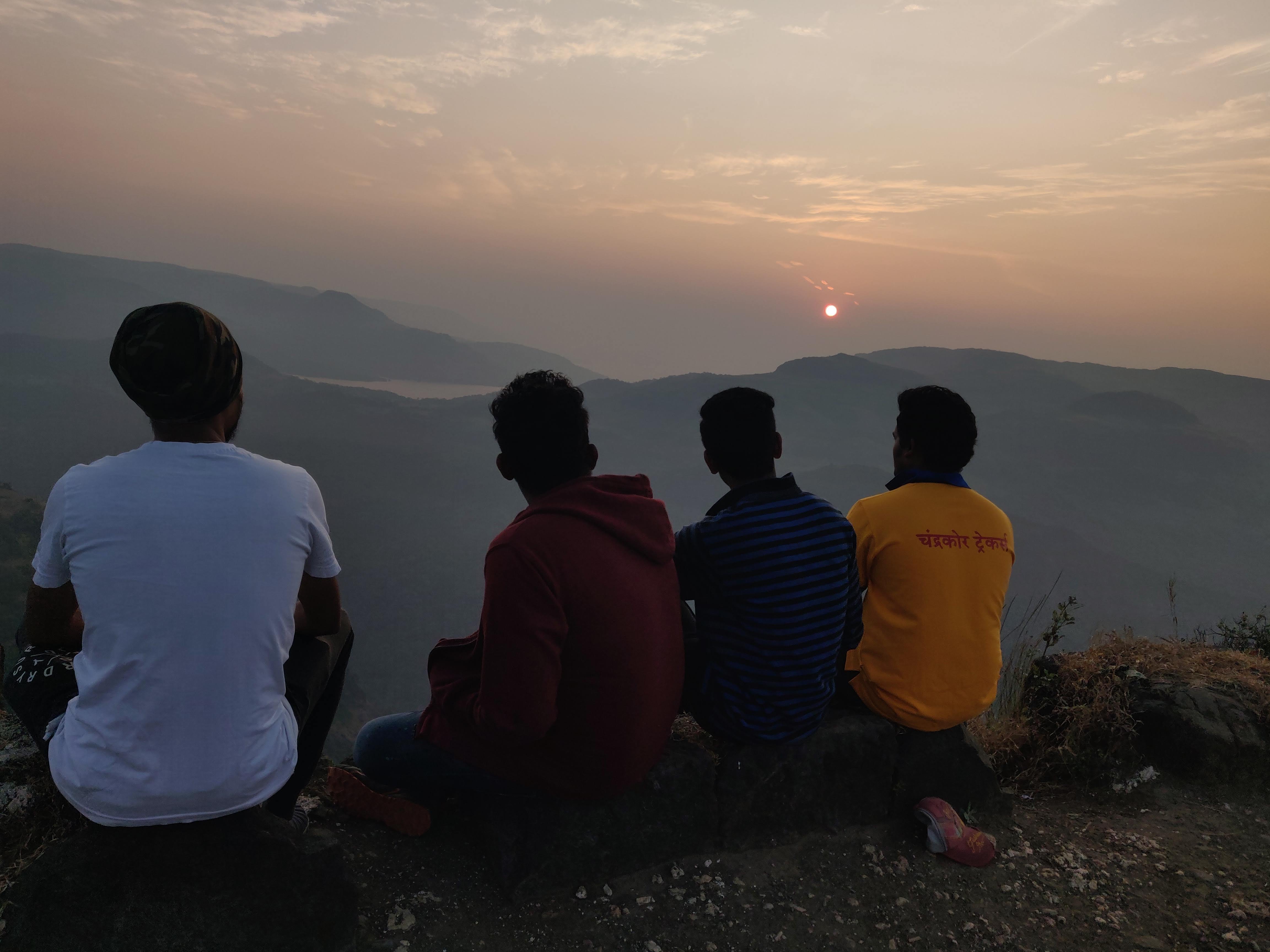 We began to climb at six to be able to see the huge ball of gas rise from the back of the mountains. In the hope to see the typical childhood drawing come alive, four of us reached the top of Shrivardhan fort on time.